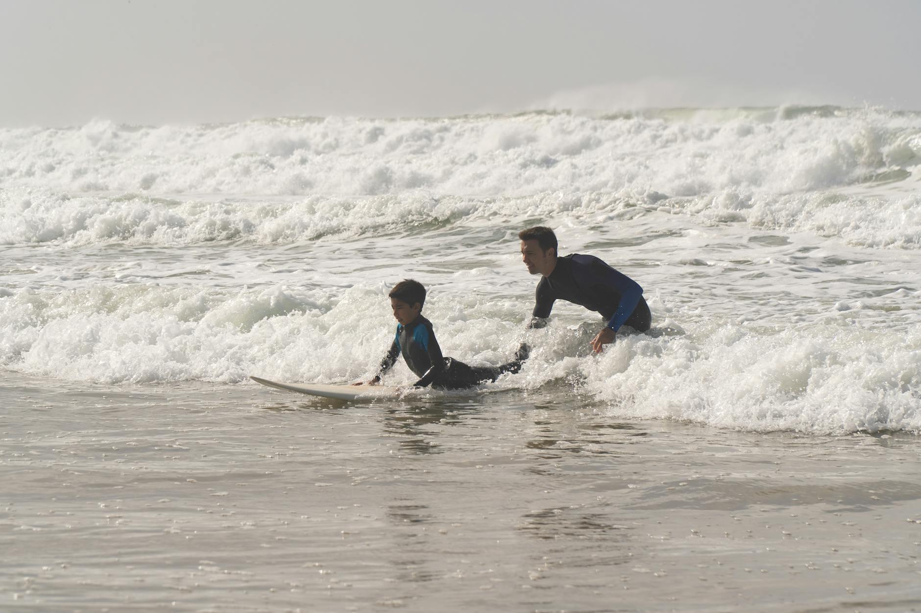In terms of psychomotor skills, surfing engages a lot of muscles you don’t usually use: legs, torso, and even arms for paddling. But beyond physical strength, it’s an excellent way to improve body awareness. Kids quickly realize they can control their movements, which boosts their self-confidence. And on top of that, it’s just plain fun! Especially when they fall into the water and get back up to take on the next wave.