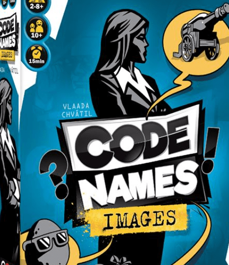 In Codenames: Pictures, players compete in teams to guess words from images. A « spymaster » provides clues (a word and a number) to help their team figure out which images correspond to the hidden words.