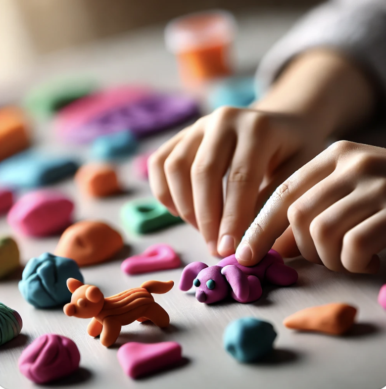 Modeling clay is an essential tool in the kit of any reputable psychomotrician. Its manipulation helps strengthen fine motor skills in the hands and fingers, which are crucial for children learning to write, as it improves control and precision. Working with modeling clay also involves the use of both hands for rolling, stretching, flattening, or shaping, thus strengthening bilateral coordination, which is essential in many everyday tasks (such as dressing, for example).