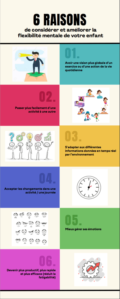 She is part of the executive functions, and without her, we would have a lot of difficulty functioning on a daily basis. Quite simply, thanks to her, we can easily switch tasks, move from one activity to another, change our way of working or thinking during an exercise, a game, or a daily life activity, and therefore modify our strategy. Here are a few reasons to take care of her in your school-aged child :