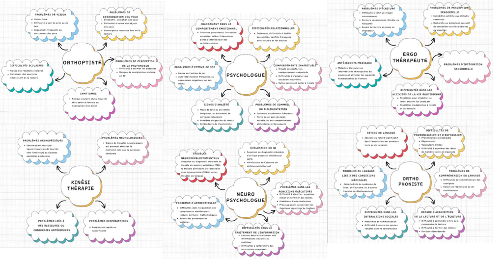 As I mentioned in a previous article, psychomotor therapists work collaboratively with other professionals to support your children. However, it can sometimes be challenging for you to know which professional to approach first. Therefore, we have tried to compile observations that may guide you in consulting a particular healthcare professional: